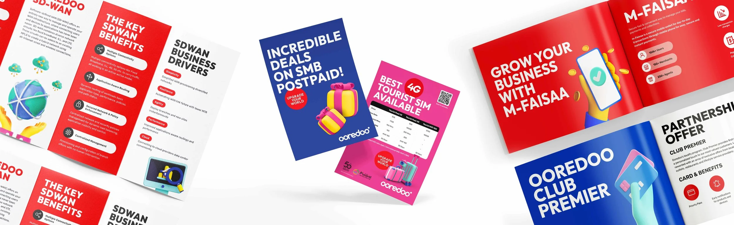 Designs and concepts created for different campaigns run by Ooredoo Maldives, a telecommunication company, to promote their services.